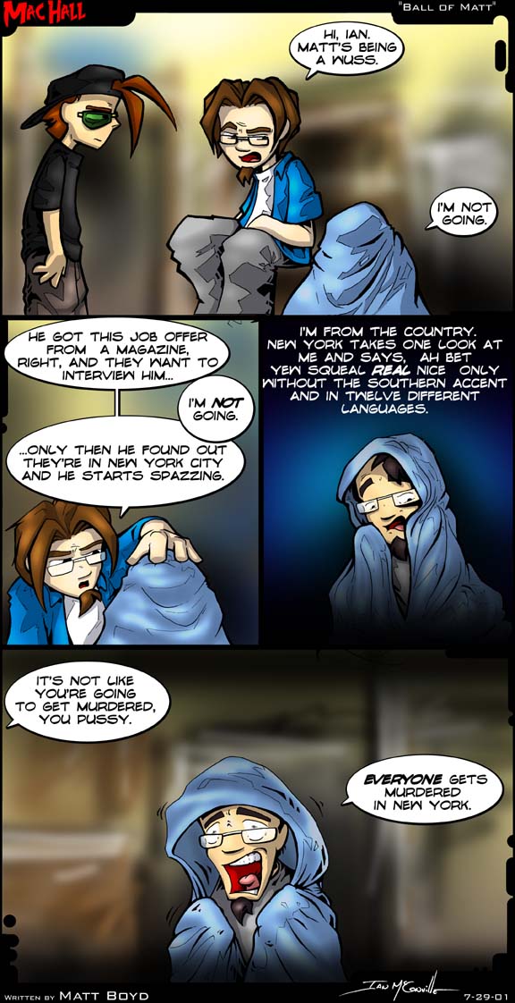 previous comic. Drew is sitting on something next to Matt, who is