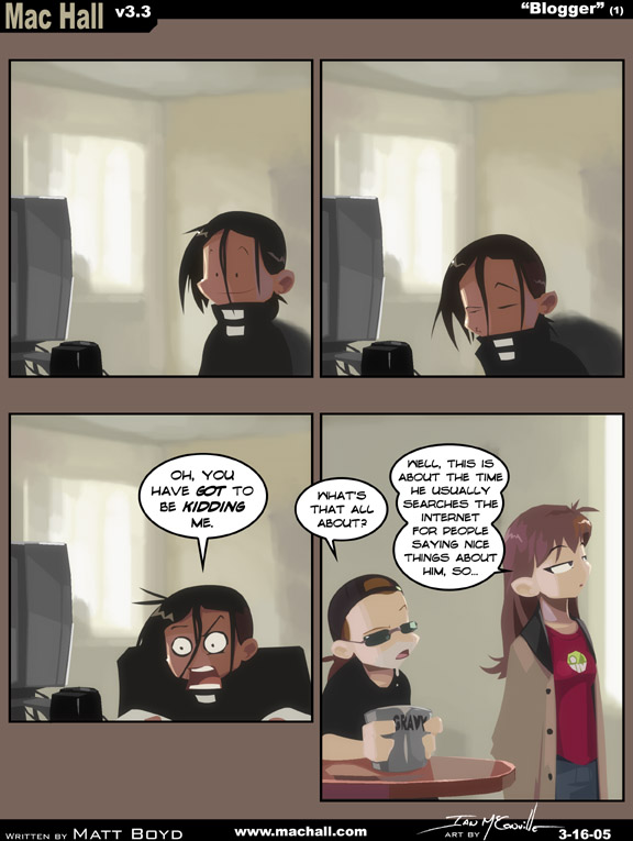 [[Micah sits in front of his computer, looking simplistically happy. The angle of the monitor hides the screen from the viewer]]