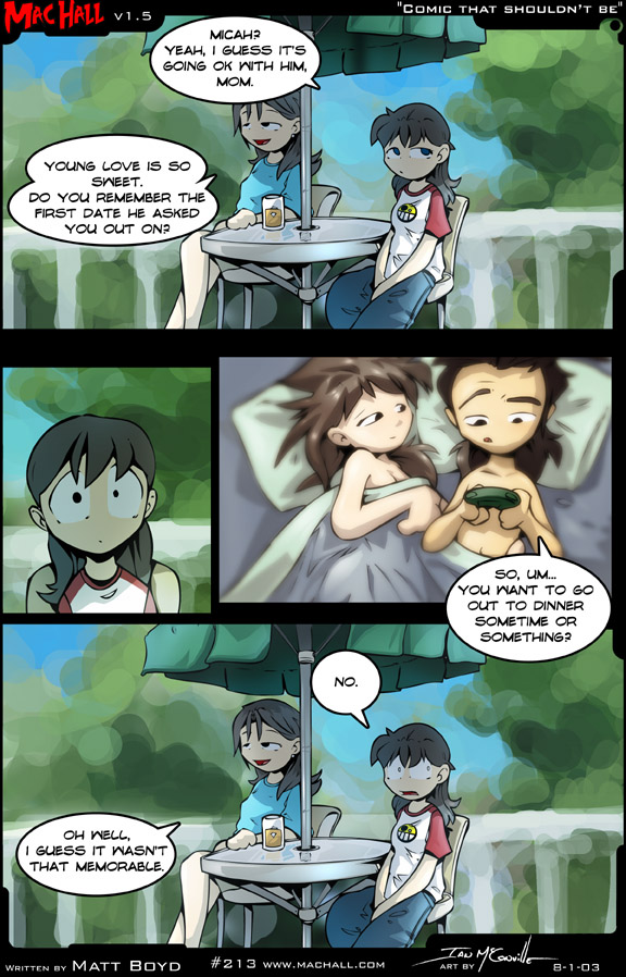 {{Mac Hall v1.5 #213, "Comic that shouldn't be," 8-1-03. Written by Matt Boyd, art by Ian McConville.}}