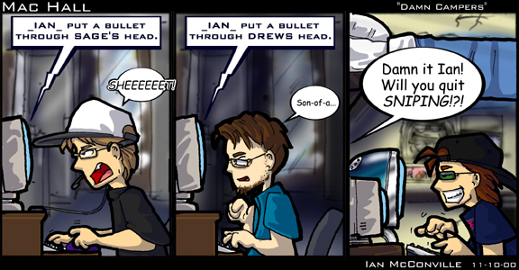 Computer: _IAN_ put a bullet through Sage's head. Sage: Sheeeeeeet Computer: _IAN_ put a bullet through Drew's head Drew: Son-of-a... Drew: Damn it Ian! Will you quit SNIPING!?!