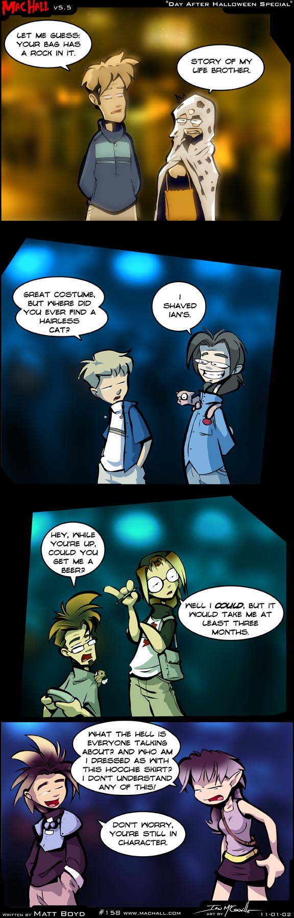 [[It appears to be Halloween. Mike is dressed as Tycho and Matt in a poorly made ghost costume]]