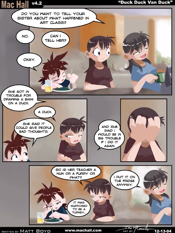 Helen's mom: She got in trouble for drawing a bikini on a duck.