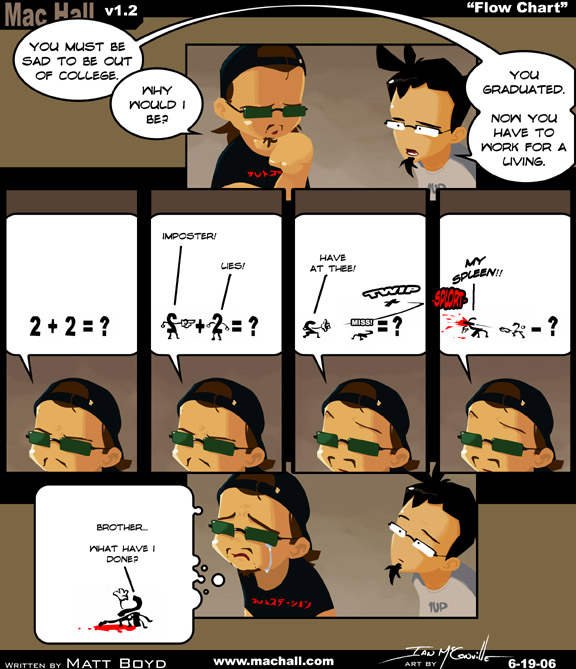 [[Ian's speech bubble has the equation "2 + 2 = ?" written in it.]]