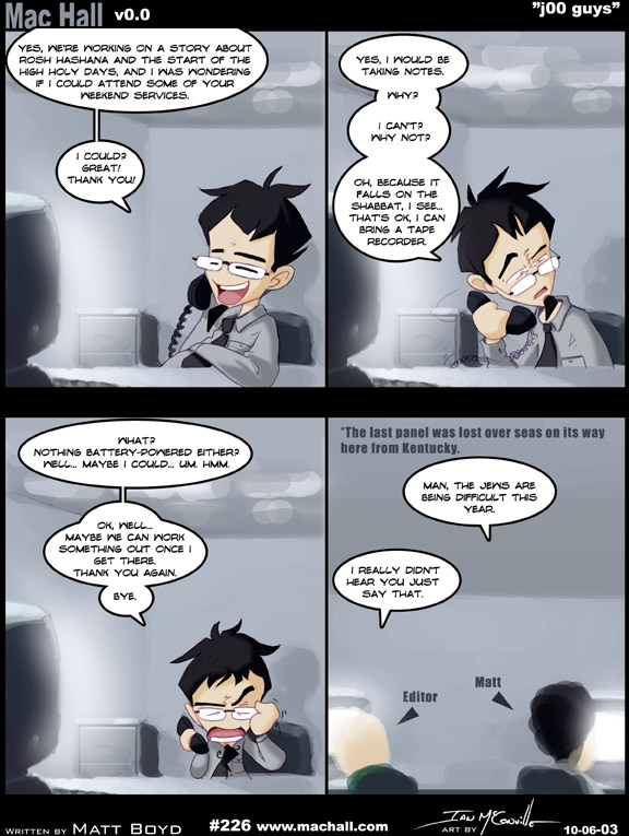 Matt: Yes, we're working on a story about Rosh Hashana and the start of the High Holy days, and I was wondering if I could attend some of your weekend services. I could? Great! Thank you!