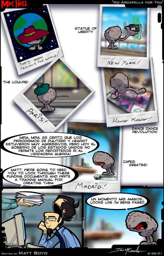 [[Matt's brain stands on a table, holding a lengthy discussion.]]