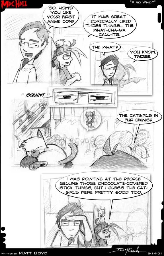 Ian: I was pointing at the people selling those chocolate-covered stick things, but I guess the Cat-Girls were pretty good too.