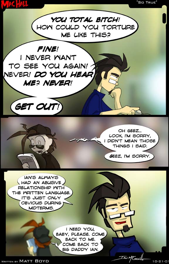JM: Ian's always had an abusive relationship with the written language. It's just only obvious during midterms.