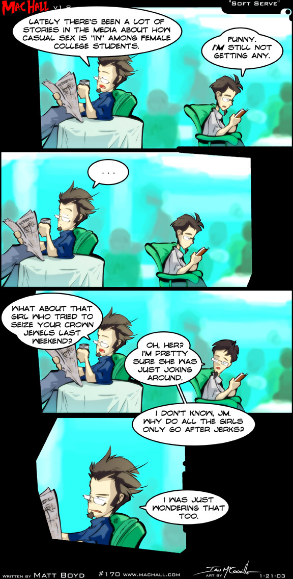 JM: Lately there's been a lot of stories in the media about how casual sex is "in" among female college students.