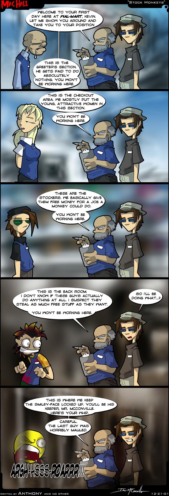 [[Kevin, drooling Greeter, and Wal*Mart supervisor standing In a Wal*Mart]]