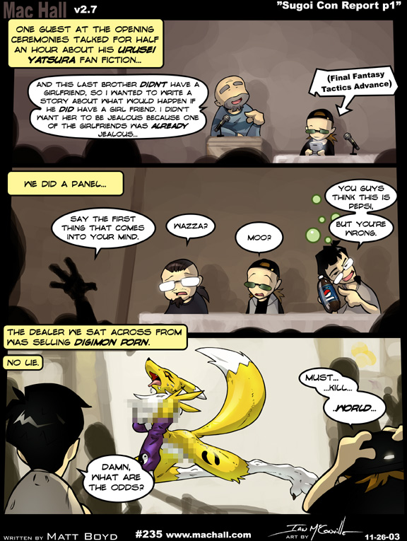 [[The dealer we sat across from was selling DIGIMON PORN. No lie: Matt and Ian are looking at said pr0ns.]]