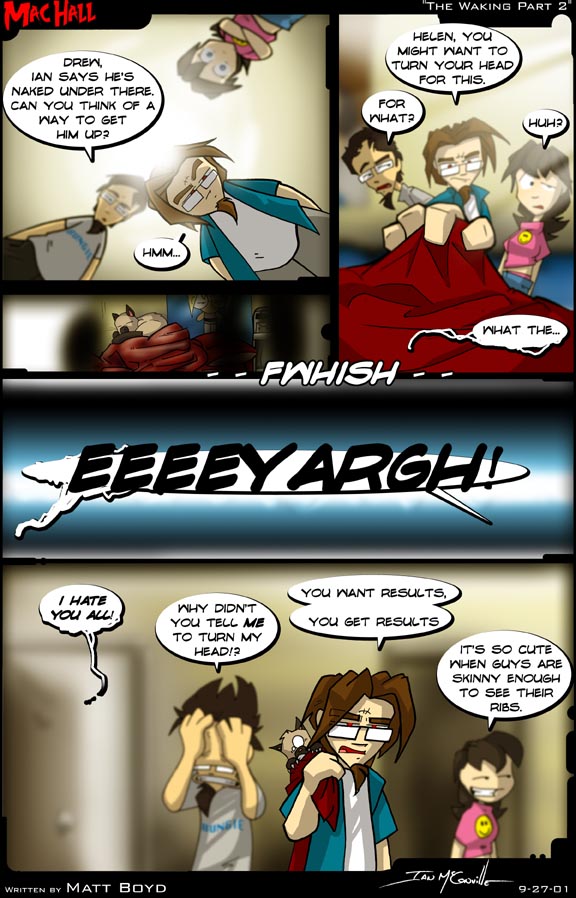 Matt: Drew, Ian says he's naked under there. Can you think of a way to get him up?