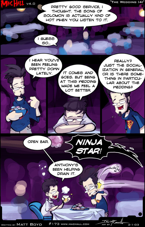 Matt: It comes and goes. But being at this wedding made me feel a lot better.