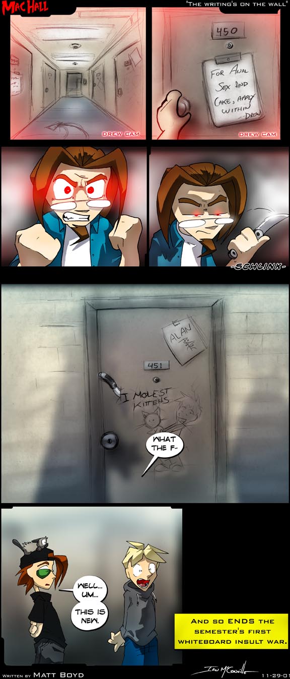 [[Still in Drew Cam, door number 450 is approached, there is a sign]]